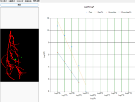 v 軟件能進行根系的拓撲分析,自動確定根的連接數、關系角等,還能單獨地自動分析主根或任意一支側根的長度和分叉數等,可單獨顯示標記根系的任意直徑段相應各參數。